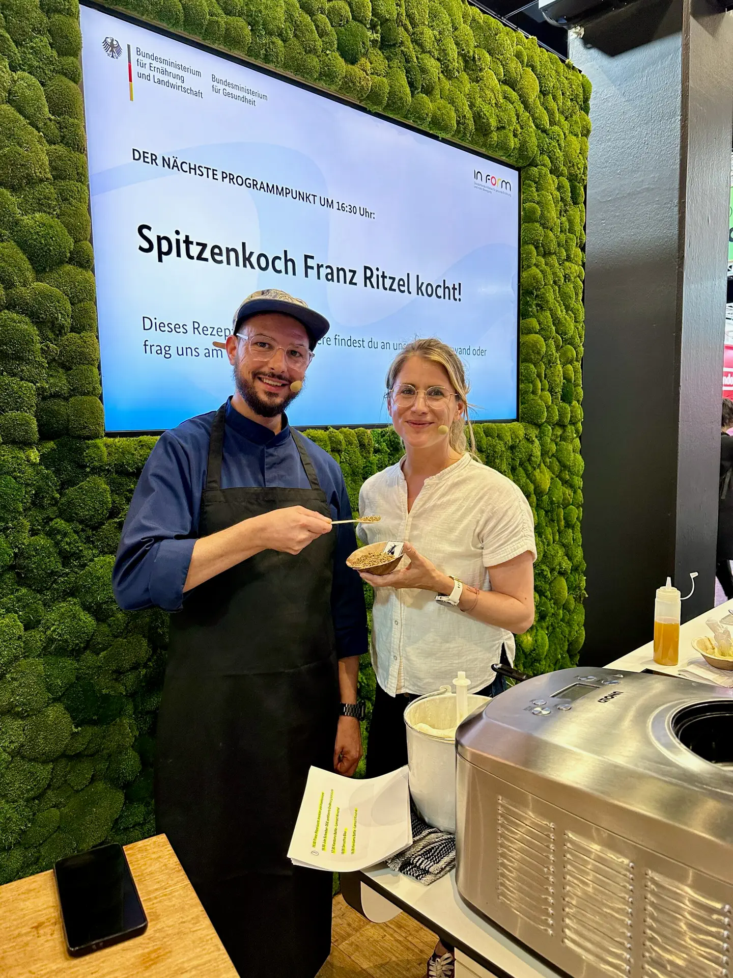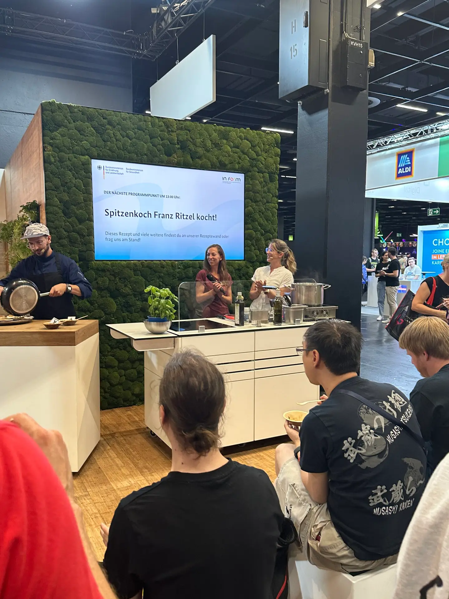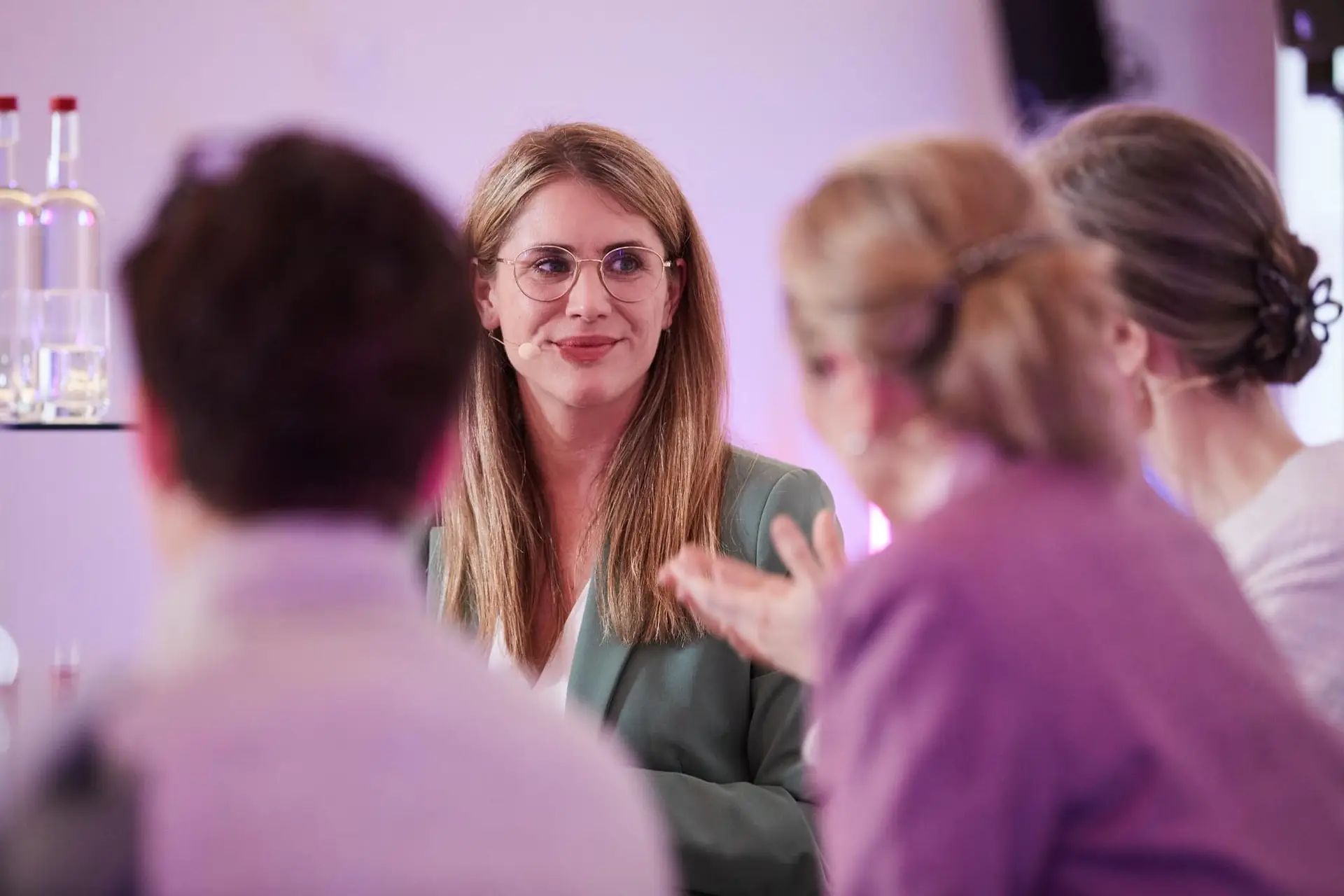 Durch mein Auslandsstudium in Paris spreche ich heute fließend Englisch, und gut Französisch und Italienisch. Gerade auf internationalen Formaten entsteht dadurch eine natürliche Verbindung im Raum. Diese Mehrsprachigkeit öffnet Türen: Inhalte lassen sich für ein diverses Publikum klar und warm transportieren, ganz ohne Sprachhürden. Damit wir jeden Gast abholen -ob bei Panel-Talks, Messeauftritten oder Business-Events.